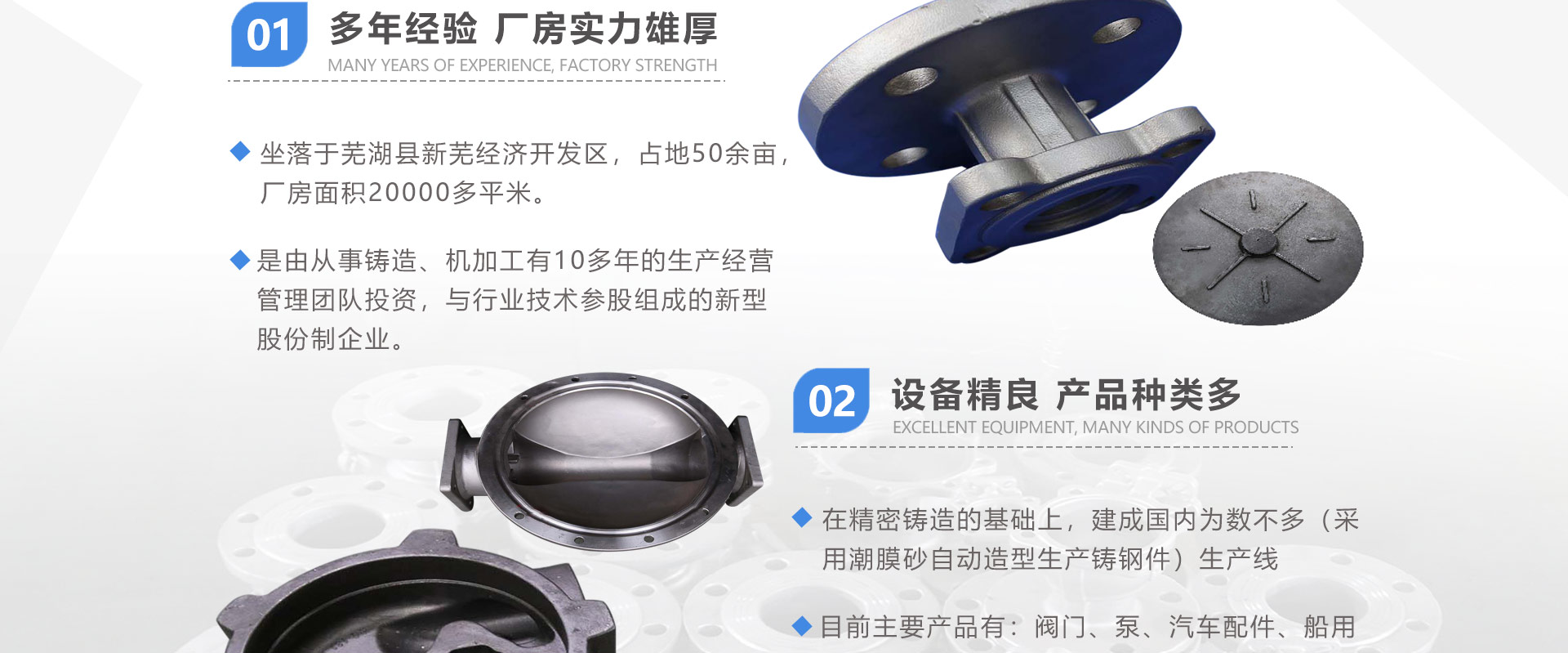 安徽偉工機(jī)械科技有限公司,坐落于安徽蕪湖新蕪經(jīng)濟(jì)開發(fā)區(qū),是一家専業(yè)從事鑄造產(chǎn)品設(shè)計(jì)、研發(fā)、生產(chǎn)、銷售于一體的企業(yè),公司為客戶的產(chǎn)品提供多樣的技術(shù)支持與設(shè)計(jì),公司主要鑄造技術(shù)有潮模砂鑄造、硅溶膠精鑄工藝。主要產(chǎn)品有:不銹鋼閥門配件、泵閥配件、汽車配件、工業(yè)管道配件、工程機(jī)械配件、汽車配件等。材質(zhì)為:低合金鋼、304、316、316L、鉻鉬鋼、哈氏合金、碳鋼、雙相鋼等。公司已先后通過ISO9001和TS16949等多種體系審核,以完備的管理手段和齊全的檢測(cè)設(shè)備滿足客戶需求,進(jìn)的設(shè)備,専業(yè)的技術(shù),嚴(yán)謹(jǐn)?shù)墓芾恚€(wěn)定的質(zhì)量。服務(wù)客戶,鑄造未來,偉工誠摯的歡迎新老客戶共同商洽合作